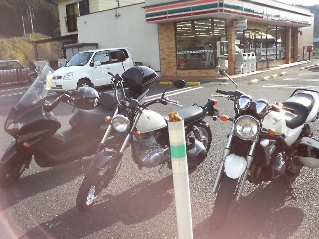× [PR]上記の広告は3ヶ月以上新規記事投稿のないブログに表示されています。新しい記事を書く事で広告が消えます。 ツーリングいってきました 面子はラミウス・俺・五十六 上の写真のバイクもそのような順番で並んでおります 結論からいうと、グダグダでした まず、10時に益子のセブン○レブンに集合の予定だったんですけど、 五十六こねぇ・・・ 迷ったり家でるのが遅かったりで30分遅刻でした(´・ω・`) そんな感じで始まった旅です ↓は最初の目的地袋田の滝 ぶっちゃけ行くことになったのは今日です とりあえずつくことには成功したのですが問題が・・・ この滝のふもとにいくと、車両進入禁止の看板とともに手招きをする人たちがいました そのなかの一人のおっちゃんが先頭を走っていたラミウスに何か話し掛けて誘導されますた そして、俺がそのおっちゃんの話を聞いたのはここからなんですが、 おっちゃん「食べてから見にいきますか?帰ってきてから食べていきますか?」 俺ら「え?いつここで食べていくことになったの???」 なにやらもう食べていかなくてはいけない雰囲気になって結局そこで食べることに・・・ 観光地は怖いです 本当は目的地であるプラトーさとみという牧場で食おうかってことになってたんですがね 結論から言うと、ここで食べたのは失敗ではなかったんですが なんか納得のいかない俺ら で、入場料払って滝見て次へ・・・ まぁわざわざ入場料(300円)払わなくてもよかったかな、とはおもったねwww 昼飯は俺はざるそばを食べました まぁ普通の蕎麦ですね そして帰り、最初のおっちゃん登場 この人やたら話し掛けてくるんでどうしようかと思いました なにやら五十六にダムのほうへいく道を教えてたようですが、 俺らはそっちにはいきません 一応プラトーにいく道は確かめることはできたんですけどね 次は一応今回の目的地であったプラトーさとみです そこまで行く道は車も通ってなかったしそこそこ広くて走りやすかったw そこは先頭俺が走ってたので思いっきり飛ばしちまったよw で、プラトーさとみは山のちょっと上のほうにあるわけですが 雪あります 寧ろ降ってきてます 寒ぃorz 風ツヨイ 風力発電の風車がものすごい勢いで回ってますしね しかも予想に反してなにもないんですよね 平日まっ昼間なんで営業してるのかどうかもあやしいレベルで 飯くうとこも一応あるみたいだけど人いねぇし ここでは結局なにもできませんでした 道は凄くよかったんですけどね ジェットコースターみたいで 「一番寒い日にわざわざ」 的なことを売店のおばちゃんにいわれましたよ 寒いのでふもとにおりて道の駅へ避難しました 最後に急遽きまったツインリンクもてぎにいくことに まぁ今回最大の失敗ですね 入場したのは4:45くらい 閉園5:30(´・ω・`) ちょっとフリー走行みてホンダの展示物みにいこうとしたんですが、 「閉館30分前に入場受付〆切ります」 現在5:15くらい (´・ω・`) こういうとこは昼には行かないとダメだね 入ろうぜっていったの俺とラミウスだからまぁ俺らのせいなんだが そんな感じで国道123号そのまま通って朝集合した場所にいって信号待ちしてるあいだにちょっと話して解散 という一日でした グダグダだったけどなんだかんだで走るの目的だし走ってるのは楽しかったからいいんですけどね 肩いてぇ・・・orz そういや、ガソリンはかなり安くなってましたね 場所によるけど 三回給油して 128・140・125円だったかな 暫定税率はいらない子 貧乏学生にはうれしいことです PR